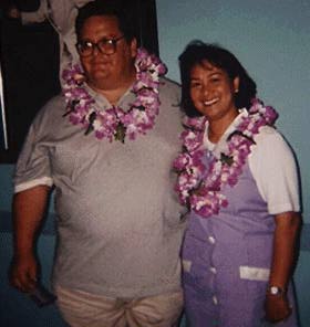 Here are Ida and I shortly after we landed on our first Island, Maui. In Maui we stayed at a 4 star hotel called Stoufer's Renaissance in Wailea. A nice hotel, but they stuck us ina room in the corner of the lowest floor with no view, but it was a nice room. While in Maui, I Biked down Haleakala (the dormant volcano in Maui) from the peak at about 10,000 feet above sea level. In just 35 miles, as the road goes, we reached sea level. Later, we visited old Lahina so we could get some T-shirts from Plant Hollywood. Ida is starting a collection. Next, we took a whole day to travel the infamous road to Hanna in our 4-Wheel Jeep. I loved Hanna! One of these days, I want to retire there and sell lawn sprinklers. On the Fourth of July, we went to go see the movie "Independence Day", and saw some real fireworks from a romantic spot on the Beach at our Hotel. On our last day in Maui, we went to our hotel's Luau, which was supposed to be one of the better ones on Maui, but it rained, and they moved it indoors into a big conference room. What a bummer!